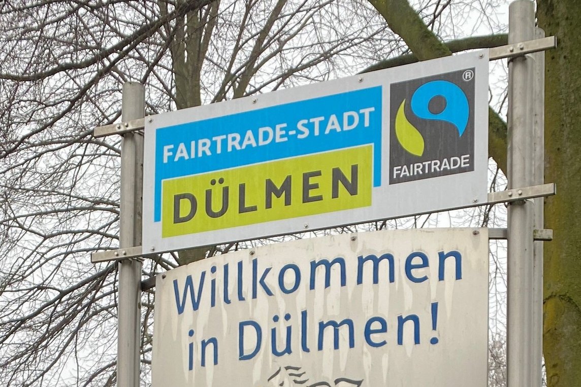 Schilder an Ortseingängen werben für „Fairtrade-Stadt Dülmen“