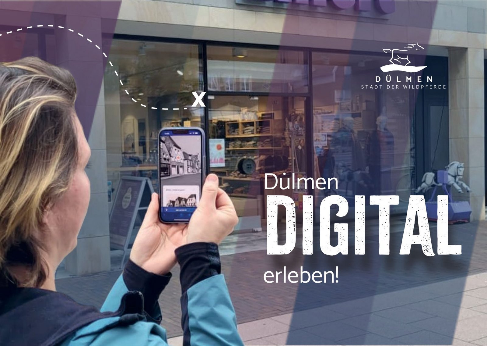 Das Besondere: An vier ausgewählten Stationen wird Stadtgeschichte auf innovative Weise lebendig. Unter dem Motto „Das Unsichtbare wieder sichtbar machen“ können Gäste mithilfe von Augmented Reality und Gaming-Elementen historische Szenen direkt auf ihrem Smartphone erleben – etwa das Dülmener Schloss in seiner alten Form, einen Glockengießer bei der Arbeit oder die Marktstraße vor dem Zweiten Weltkrieg. Realisiert wurden diese besonderen Stationen in Zusammenarbeit mit der Agentur SpotAR. Bodenaufkleber an den Standorten zeigen den besten Platz für das digitale Erlebnis.