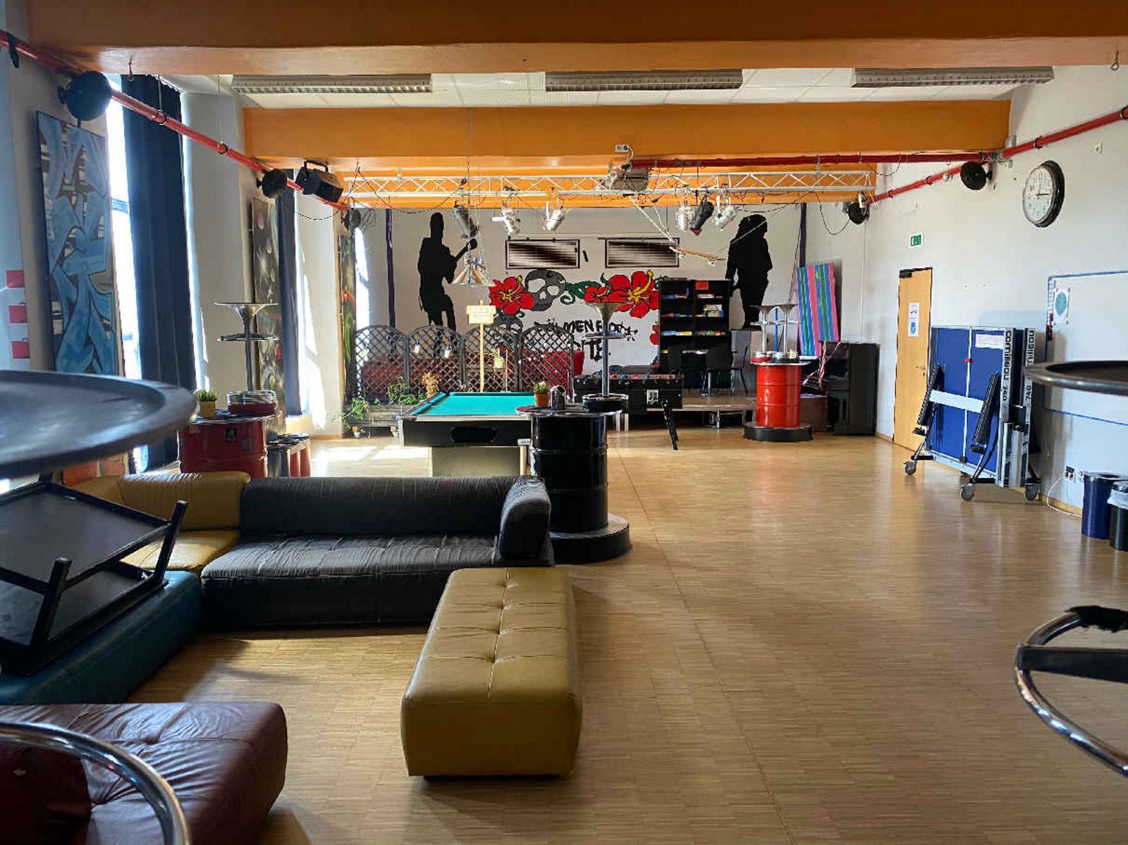 Hier könnt ihr kostenlos chillen, Musik hören, Billard spielen, Playstation oder Switch zocken, Darts spielen, Zeitschriften und Bücher lesen, Spiele spielen, kochen, Kicker spielen, W-Lan nutzen, Basteln und Malen, Freunde treffen, Leute kennenlernen, mit uns quatschen und vieles mehr.