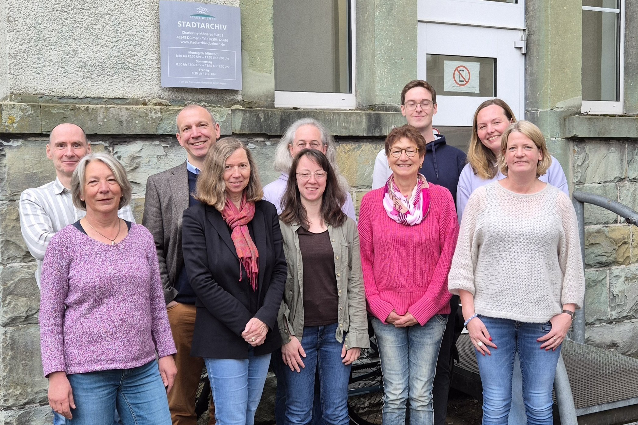 Zu einem Austausch trafen sich Vertreterinnen und Vertreter kommunaler Archive im Kreis Coesfeld amMontag, 13. April, im Dülmener Stadtarchiv. Unter anderem besprachen sie Pläne für die Gründung eines Notfallverbundes, um sich z.B. bei Hochwasserschäden im Archiv gegenseitig zu unterstützen. Damit möchten die Archive des Kreises Coesfeld dem Beispiel vieler anderer Kreise in Nordrhein-Westfalen folgen, die bereits seit längerer Zeit über entsprechende Verbände verfügen. Zudem stellte Dülmens Stadtarchivar Dr. Stefan Sudmann als Gastgeber sein Forschungsprojekt zu den Dülmener Stadtverordneten der Weimarer Republik und deren Schicksal im Nationalsozialismus vor, das im Herbst in Buchform erscheinen soll. Die anderen Mitglieder des Arbeitskreises zeigten großes Interesse an diesem Projekt und waren sich sicher, dass dieses Buch auch Anregungen für die anderen Kommunen des Kreises zur Durchführung ähnlicher Forschungsprojekte bieten kann.