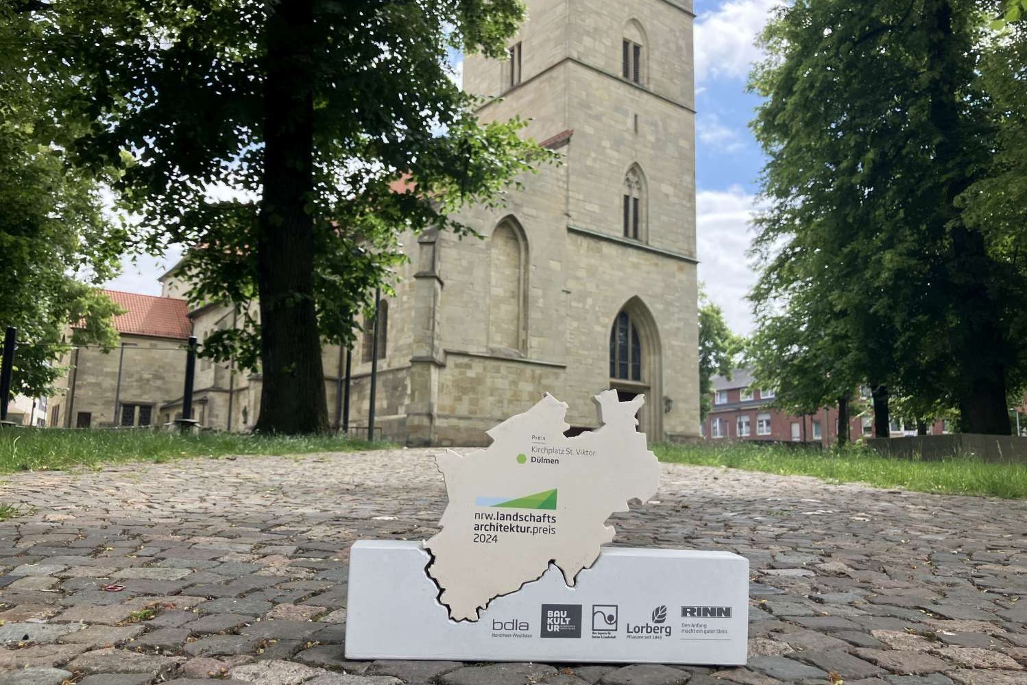 Für die Neugestaltung des Kirchplatzes St. Viktor ist das Büro „Lohaus · Carl · Köhlmos“ aus Hannover mit dem NRW-Landschaftsarchitektur-Preis 2024 ausgezeichnet worden. In Essen nahmen Thomas Köhlmos und Robert Brandt in Begleitung von Pfarrdechant Markus Trautmann und Peter Briewig die Auszeichnung entgegen. Die beiden Landschaftsarchitekten hatten im Auftrag der Kirchengemeinde St. Viktor und der Stadt Dülmen in den vergangenen Jahren dem Kirchplatz eine „Frischzellenkur“ verpasst. Er ist ebenso wie der Marktplatz und die umliegenden Straßen und Gassen Teil des neu entstandenen einsA-Quartiers in der Innenstadt.