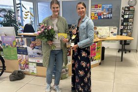 Dülmen. Dass der Dülmen Gutschein seit Jahren eine Erfolgsgeschichte schreibt, ist hinlänglich bekannt. Helena Bockey war am Freitagmorgen nun die Glückliche, die den 60.000. Dülmen Gutschein gekauft hat und hierfür aus den Händen von Dülmen Marketing-Mitarbeiterin Irina Ruf einen Blumenstrauß sowie eine Flasche des gerade prämierten Dülmener Wein des Jahres 2025 erhielt.
