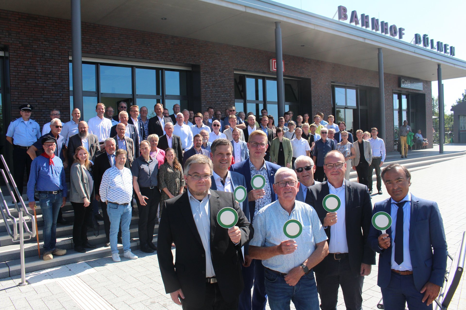 Der umgestaltete Bahnhof Dülmen ist am vergangenen Freitag offiziell eröffnet worden. Zahlreiche Gäste, Projektpartner sowie Bürgerinnen und Bürger feierten bei bestem Wetter mit. In einer Rekord-Bauzeit von nur drei Jahren ist unter dem Motto „Klimagerecht mobil unterwegs“ ein modernes Bahnhofs-Areal mit einem Fahrradparkhaus, einem barrierefreien Vorplatz und einem neuen Empfangsgebäude entstanden. Auf dem Vorplatz wurde Jazz-und Akustik-Musik mit dem „Matthias Beckmann Quartett“ und der Band „Tread 3.0“ sowie kostenlose Getränke, Currywurst und Gebäck geboten. Zudem fanden Führungen über das Gelände statt.