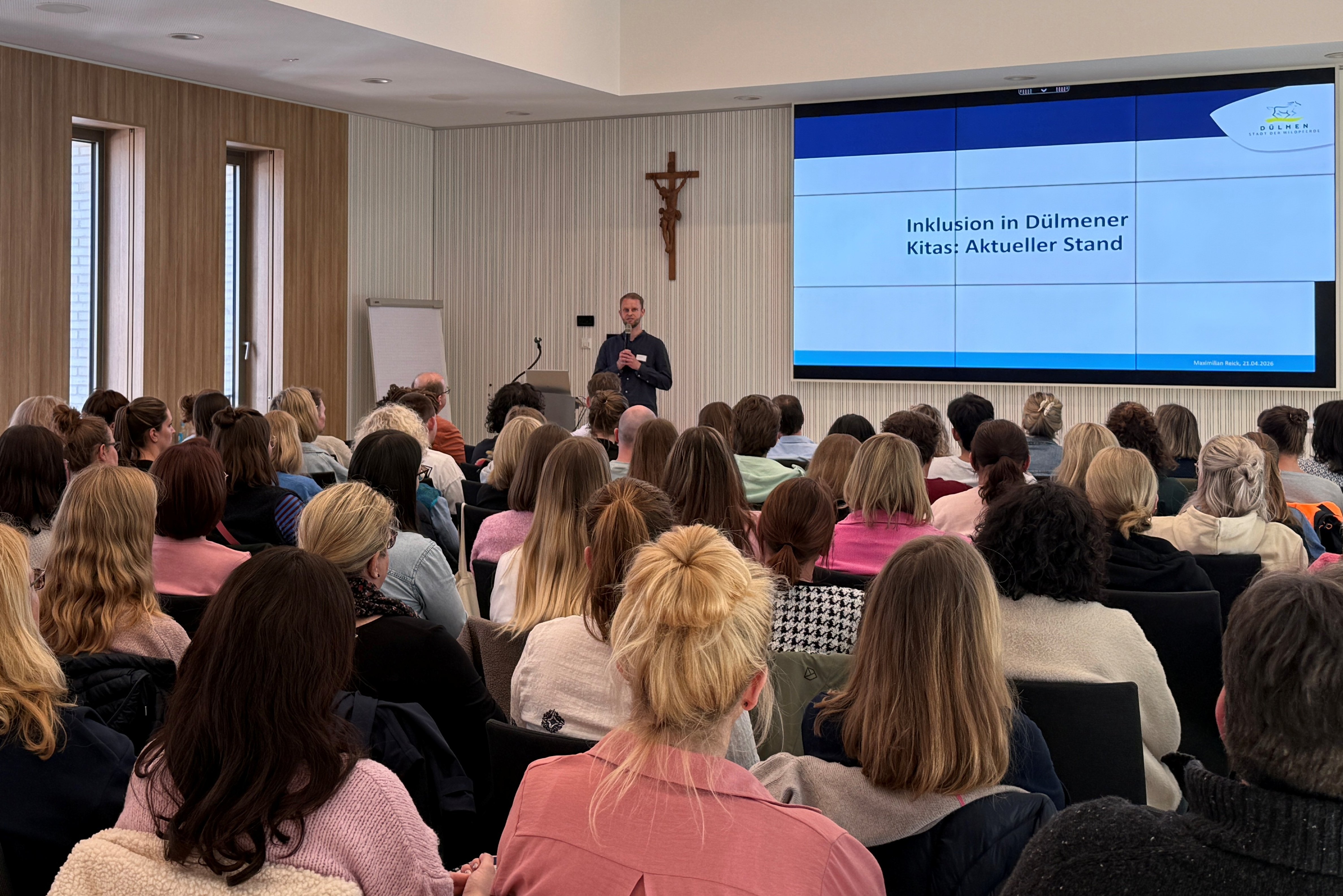 „Die inklusive Betreuung in Kindertageseinrichtungen ist gesetzlicher Auftrag und elementarer Bestandteil sozialer Teilhabe für alle Kinder“, betonte auch Maximilian Reick vom Fachbereich Jugend und Familie. Seit dem Kindergartenjahr 2018/19 hat sich die Zahl der Kinder mit Förderbedarf in Kindertageseinrichtungen in Dülmen nahezu verdoppelt und lang 2023/24 bei 134. Der Fachbereich beschäftiget sich daher intensiv mit der Weiterentwicklung inklusiver Kindertagesbetreuung und hat dazu verschiedene Maßnahmen auf den Weg gebracht, zu denen auch die Fachtagung gehörte.
