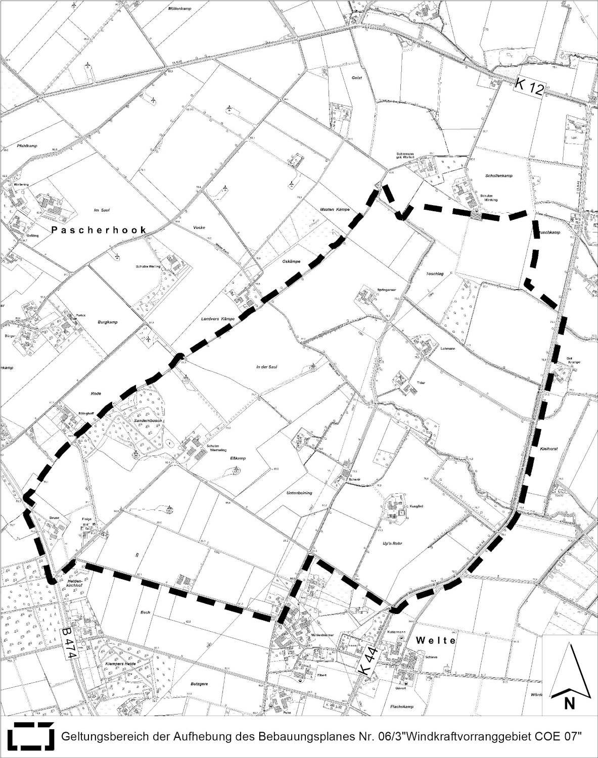 Nördlich von Welte liegt das „Windkraftvorranggebiet COE 07“: Die kryptische Bezeichnung entstammt dem gleichlautenden Bebauungsplan. Diesen möchte die Stadt Dülmen jetzt aufheben. Die Stadtverordnetenversammlung hat einen entsprechenden Einleitungsbeschluss im März 2026 gefasst. Der Bebauungsplan stammt aus dem Jahr 2006 und trifft unter anderem Regelungen zu Standorten und Höhen von Windenergieanlagen. Diese sind jedoch durch neue Bestimmungen mittlerweile überholt.