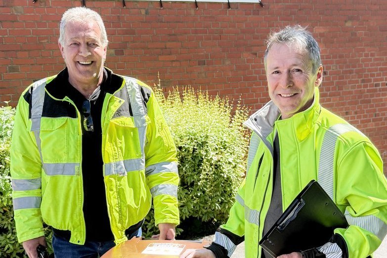 Im Einsatz für sauberen Bioabfall: Gerd Thies und Bernd Brüning beantworten bei der Tonnenkontrolle gern Fragen zur richtigen Mülltrennung.