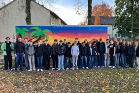 Spraydose gezückt und los geht's: Der neue Sportanlage "An den Wiesen" ist um eine Attraktion reicher. In dieser Woche hat die Stadt eine Wand für freies Graffiti freigegeben. Damit entsteht ein offener Raum für kreative Gestaltung und Jugendkultur: ein Ort, an dem legal gesprayt werden darf. Zur Einweihung fand gemeinsam mit den Graffiti-Experten des Unternehmens "Lackaffen" ein Workshop vor Ort statt. Schülerinnen und Schüler der Hermann-Leeser-Schule gestalteten erste Kunstwerke auf Leinwand und auf der neuen Wand. Unter professioneller Anleitung lernten sie den Umgang mit Spraydosen, Farben und Formen. Das Projekt ist Teil des Bundesprogramms „Zukunftsfähige Innenstädte und Zentren“.