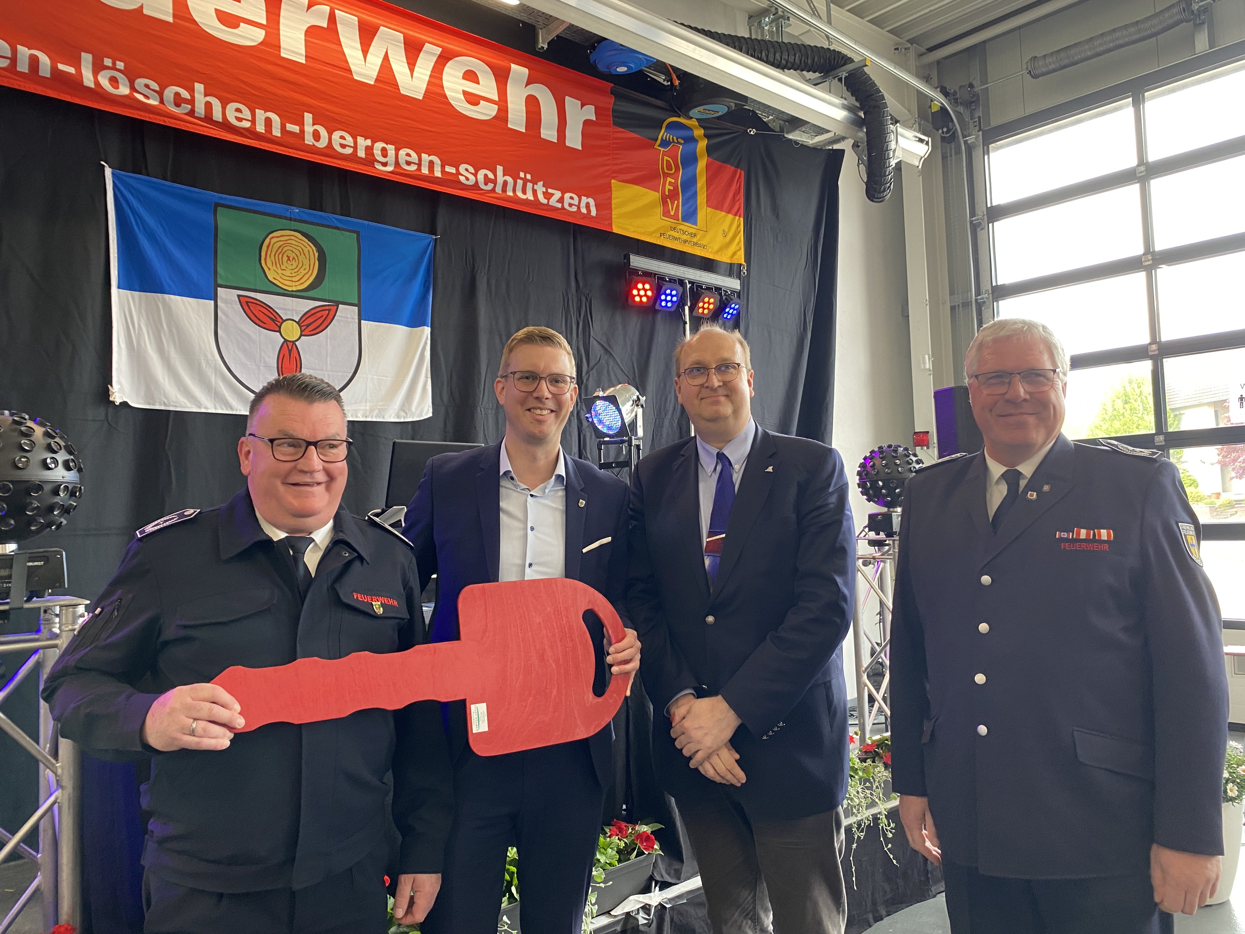 Mit einem großen Festakt und anschließendem Tag der offenen Tür feierte der Löschzug Buldern am Samstag, 27. April, die Einweihung des neuen Feuerwehrgerätehauses am Wemhoff 2. Unter große Applaus der 300 geladene Gästen übergab Bürgermeister Carsten Hövekamp den symbolischen Schlüssel für das neue Gebäude an Löschzugführer Roland Strotmann. Der zeigte sich dankbar und sichtlich zufrieden mit dem Ergebnis des gelungenen Bauprojekts: „Hut ab an alle Beteiligten!“