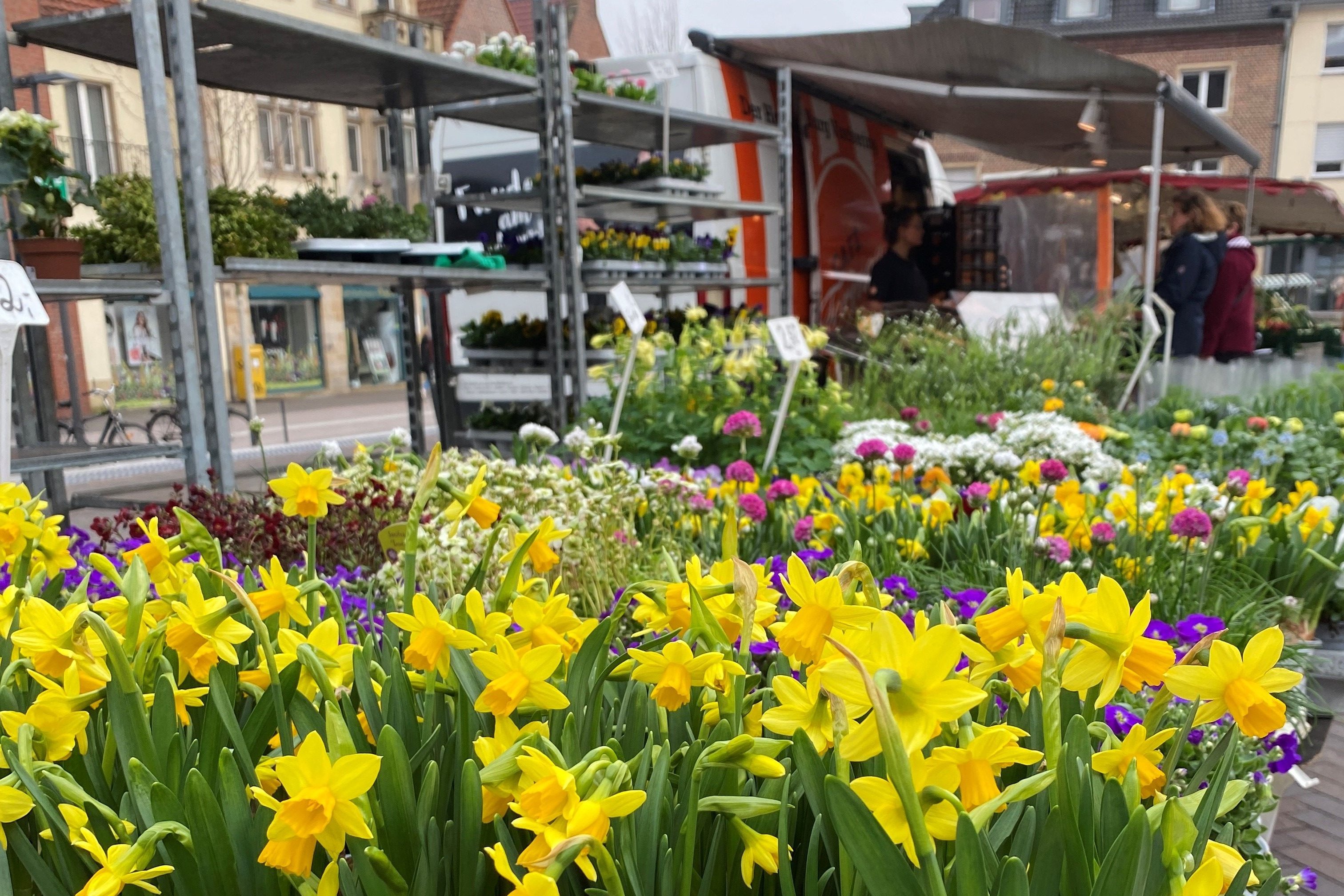 Aufgrund des Karfreitags findet der Wochenmarkt in der kommenden Woche bereits an Gründonnerstag, 28. März, statt. Kundinnen und Kunden haben dann die Gelegenheit, sich vor mit Obst, Gemüse, Blumen und anderen frischen Waren einzudecken und auf die Feiertage einzustimmen. Am Dienstag nach Ostern (2. April) entfällt der Wochenmarkt.