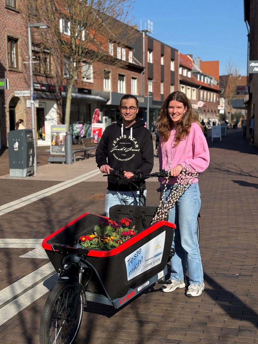 „Durch das kostenlose Angebot können die Dülmenerinnen und Dülmener das Lastenrad kennenlernen, den Umgang im Alltag testen und die verschiedenen Einsatzmöglichkeiten direkt ausprobieren“, erklärt Astrid Wiechers, Leiterin des Fachbereichs Stadtentwicklung. Ziel ist es, die klimaneutrale Nahmobilität in Dülmen zu fördern und immer mehr Dülmenerinnen und Dülmener dazu zu bewegen, auf das Rad beziehungsweise das E-Bike umzusteigen. Gefördert wurde das Lastenrad durch das Regionalbudget der VITAL.NRW-Region Hohe Mark.
