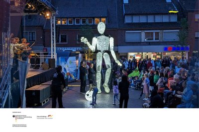 Das Straßentheaterfestival DÜLMENER SOMMER wurde 2023 erstmals ergänzt um das Thema "Lichtkunst". Sowohl die Auftaktveranstaltung im Stadtpark an den Wiesen, als auch ein Straßentheaterabend standen unter diesem Schwerpunkt. Am Dienstag, den 4. Juli war die "Dundu"-Familie - The Giants of Light auf dem Marktplatz zu sehen. Der Tanz der riesigen leuchtenden Figuren, die musikalisch begleitet wurden durch die Hanke Brothers begeisterte das Publikum.